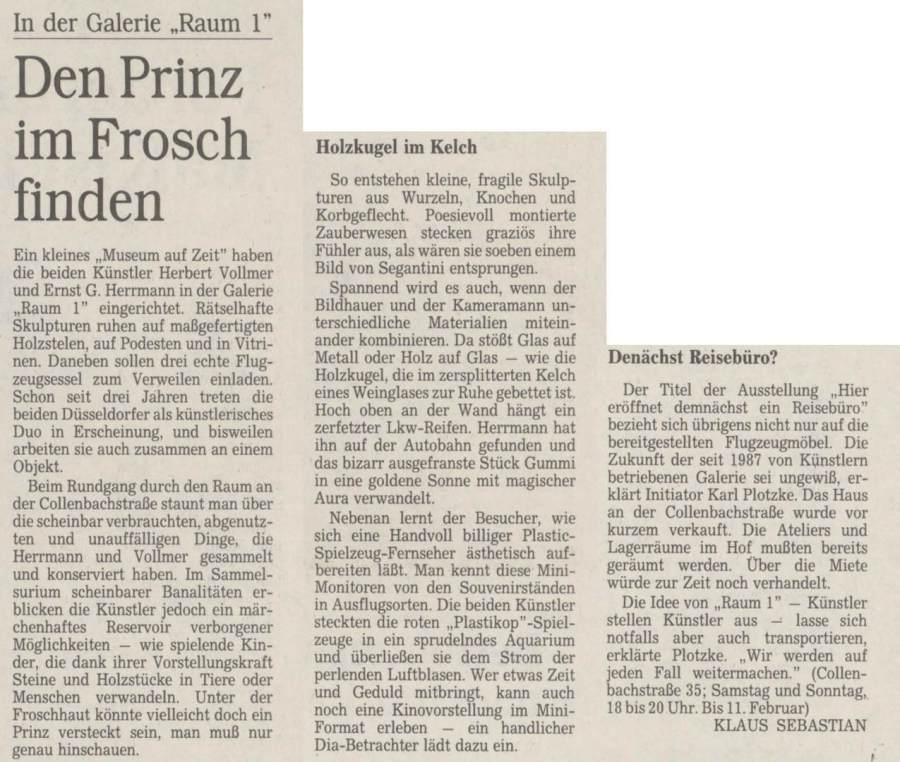 Ende 1995 wird das Haus Collenbachstraße 35 an zwei Architekten verkauft. Ich bekomme für mein Atelier im Hinterhof eine Kündigung auf Eigenbedarf.Die kleine Polsterwerkstatt im Erdgeschoss und meine Räume sollen zu einem Architekturbüro umgebaut werden.
